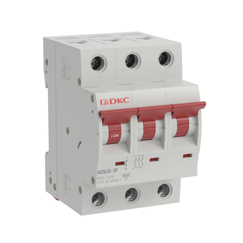 Полное описание товара Выключатель автоматический трехполюсный 10А C 4,5кА (DKC) MD63S-3PC10