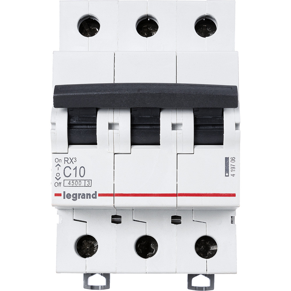 Полное описание товара Выключатель автоматический трехполюсный RX3 4,5 кА C 10 А (Legrand/Daccord) 419706