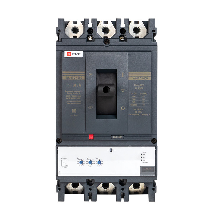 Полное описание товара Выключатель автоматический трехполюсный ВА-315А 45кА ВА-99С/400 (EKF) mccb99C-400-315