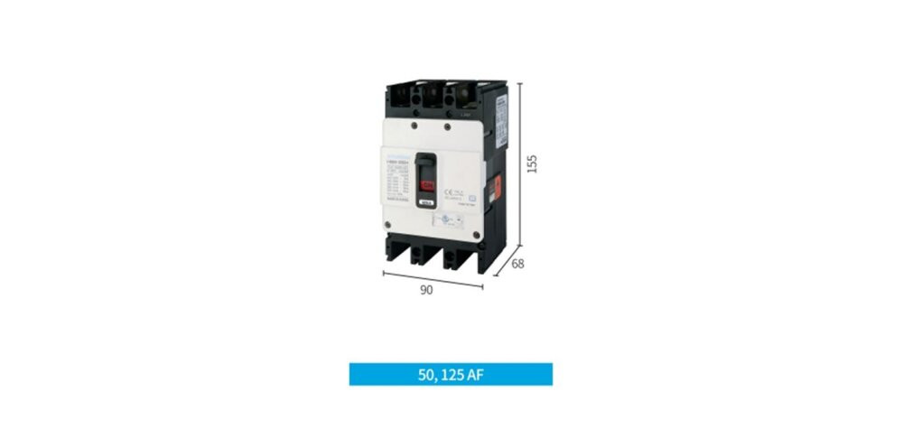 Выключатель автоматический в литом корпусе типа HGM, типоразмера 125AF, арт.HGM125L3PT4S0000C00100F (100А, 55кА, 3 полюса, регулируемый термомагнитный расцепитель, переднее подключение) (HD Hyundai Electric)
