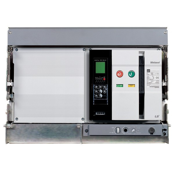 Силовой 3 полюсный воздушный автоматический выключатель переменного тока в выкатном исполнении на номинальный ток 5000 А, с электронным расцепителем (AC6), мотор-приводом, катушкой включения, независимым расцепителем. Корзина заказывается отдельно. Выключатель имеет номинальную отключающую способность 100 кА. Трехполюсные автоматические выключатели LS Electric типа Metasol предназначены для применения в электрических цепях с напряжением 690 В переменного тока частотой 50 гЦ, их защиты от токов короткого замыкания, токов перегрузки, а также для нечастых оперативных включений и отключений.