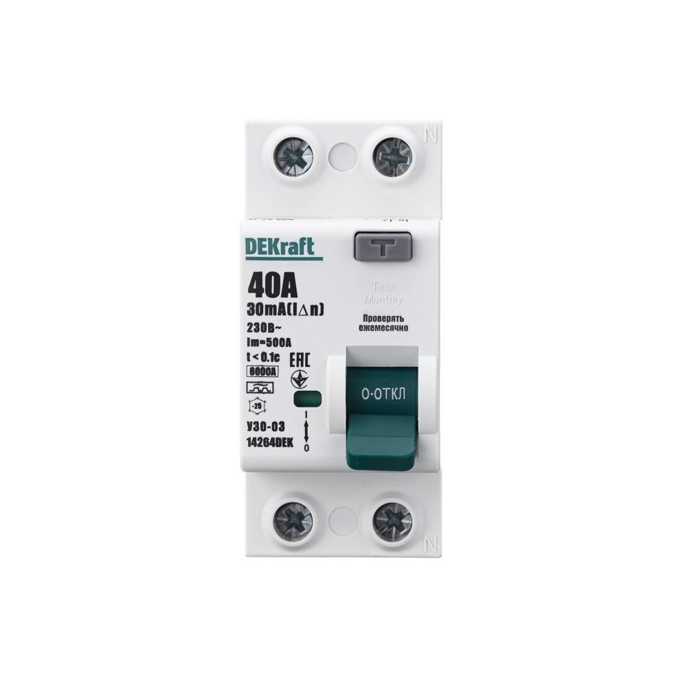 Выключатель дифференциального тока 2P 40А 30мА тип A 6кА УЗО-03 (Dekraft) 14264DEK