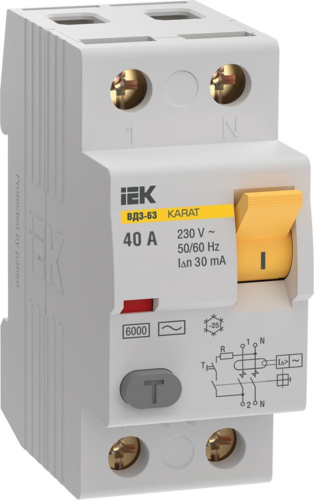Выключатель дифференциальный (УЗО) KARAT ВД3-63 2P 40А 30мА 6кА тип AC (IEK) MDV20-2-040-030