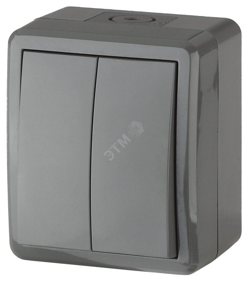 Выключатель двухклавишный наружный (открытой установки) IP54 серый 10А 250В винтовые зажимы ЭРА Эксперт 11-1404-03 (ЭРА) Б0020676
