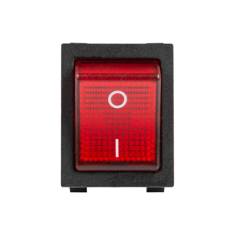 Выключатель клавишный 250 V 30 А (4с) ON-OFF красный с подсветкой предназначен для коммутации электрических цепей переменного тока напряжением до 250 В. Клавишные (Рокерные) выключатели применяются в качестве комплектующих изделий различного электрооборудования (в сетевых фильтрах и удлинителях, аудиооборудовании, блоках питания, электроустановках на различных производствах, автомобилях, и многих других местах). Такой клавишный переключатель имеет два положения. Принцип действия основан на перемещении клавиши в одну из позиций. Для переключения в нужное положение требуется приложить некоторые усилия на клавишу. Монтаж осуществляется без применения винтов на плоских панелях толщиной от 0.8 мм до 3 мм. Подключение контактов осуществляется плоской клеммой 6.6 мм, либо с помощью пайки.