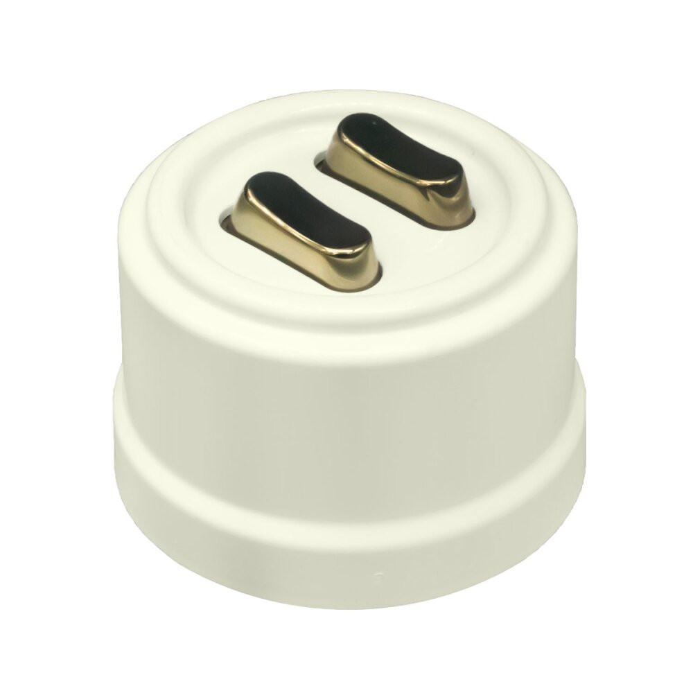 Выключатель Лизетта 2-кл., пластик, цвет Слоновая кость, Бронза (клавишный) (Bironi) B1-222-211-B