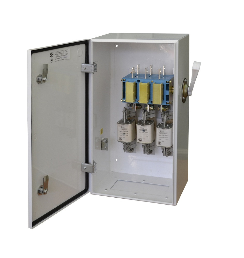 Имеет три положения оперирования - 1-линия подключается на первый ввод, 2-линия подключается на второй ввод, 3-линия подключается к отходящей линии. Особенностью является наличие рубильника ВР 32 на два направления (перекидного). Предохранители установлены неподвижно. Вводные проводники подключаются к рубильнику ВР 32, отходящие к неподвижным контактам-основаниям предохранителей. Отключение силовой цепи обеспечивается двойным видимым разрывом. Материал корпуса-металл. Степень защиты IP31 или IP54. Порошковая окраска RAL 7035.