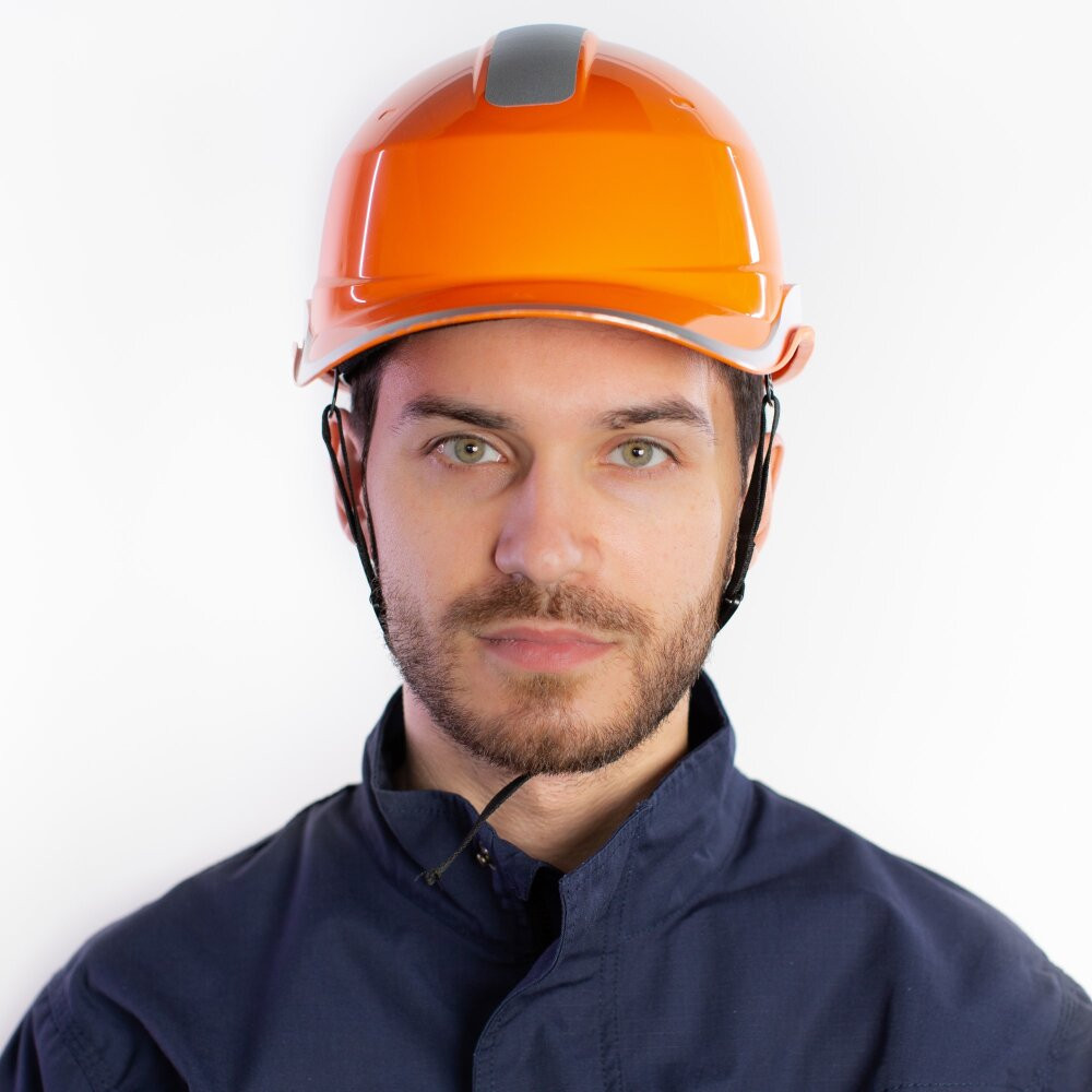 Защитная каска DIAM5UPORFL, оранжевого цвета в виде бейсболки с козырьком. Внутренняя оснастка из полиамида - 3 текстильных ремня с 8 точками крепления. Комплектуется 4-х точечным подбородочным ремнем. Потовпитывающая вставка на лобовой части оголовья. Карманы для крепления очков, наушников, щитков. Очень удобно регулируется по обхвату головы от 53 до 63 см при помощи инновационной системы затяжения ROTOR®. Две возможных позиции размещения на голове - высокая и низкая. Светоотражающая полоса сверху и по периметру каски. Температурный диапазон применения касок от - 30 градусов по Цельсию до + 50 градусов по Цельсию