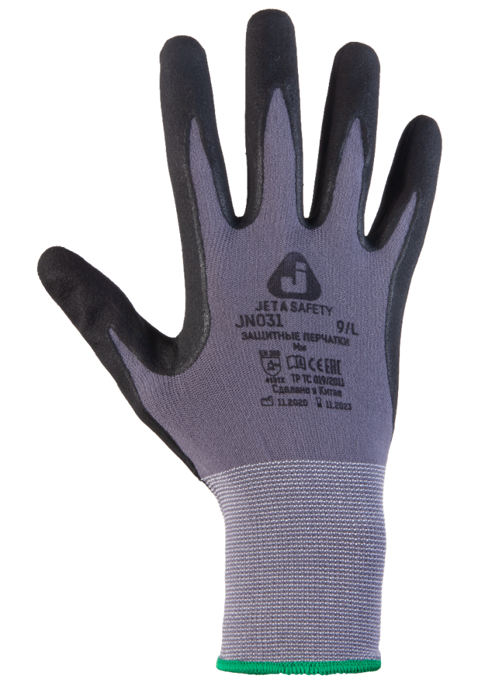 Полное описание товара Защитные перчатки, полиэфир, микронитрил. покр., серый/черный, размер XL (Jeta Safety) JN031-XL
