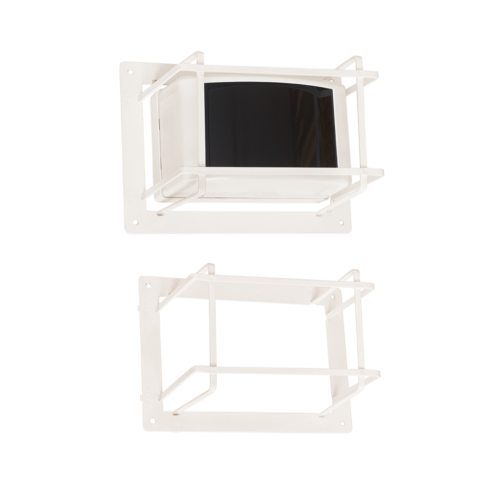 Предназначен для защиты от таких механических воздействий как попадание мячом в спортивном зале, попытки вскрытия или разрушения корпуса. Выполнен из оцинкованной стали. Может использоваться в уличных условиях, не подвержен коррозии. Имеет высокую механическую прочность.