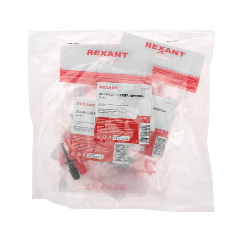 Полное описание товара Зажим для тестера Крючок, 40мм, 20шт/упак (REXANT) 16-0031