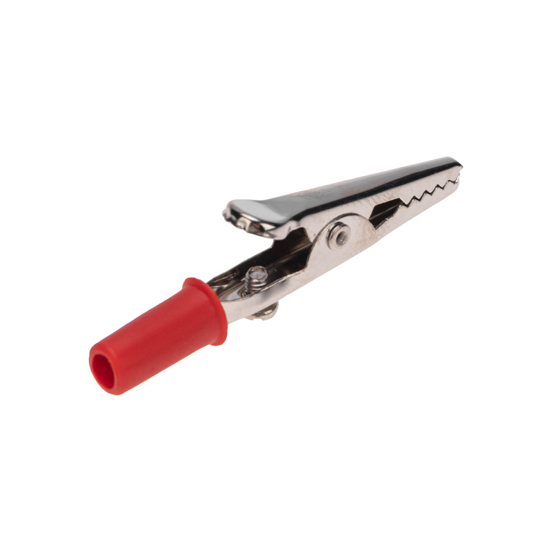 Зажим 'крокодил' 15А 53мм REXANT представляет собой электромеханическое устройство, предназначенное для оперативного соединения или разъединения контакта проводов при выполнении измерительных работ или монтажа электрических и слаботочных сетей. Зажим получил свое название за схожесть с челюстями крокодила. Состоит он из двух фигурных деталей с 'крокодильими' зубцами, скрепленных серединами специальным штифтом и способных поворачиваться на некоторый угол вокруг оси соединения. К одной из деталей с помощью винта монтируется контактный провод. Сжатие 'челюстей' обеспечивается пружиной, вставленной с другой стороны штифта. В целях безопасной эксплуатации зажима, одна ручка имеет изоляцию, изготовленную из ПВХ, что предохранит от поражения специалиста электрическим током.
