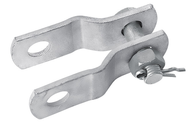 Предназначено для перехода с двухлапчатой проушины на однолапчатую при креплении подвесок на опорах ВЛ 35-110 кВ. Звено состоит из двух пластин, скрепленных нарезным пальцем таким образом, что с одной стороны звена образуется однолапчатая проушина, а с другой - двухлапчатая проушина.