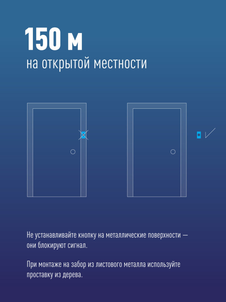 Беспроводной радио-звонок. 32 мелодии на выбор, включая стандартный вызов. Мгновенная установка без инструментов. Применяется как в городских квартирах, так и в загородных домах, где кнопка вызова может размещаться прямо у калитки. Кнопка защищена от дождя. Дистанция 150 метров при прямой видимости.