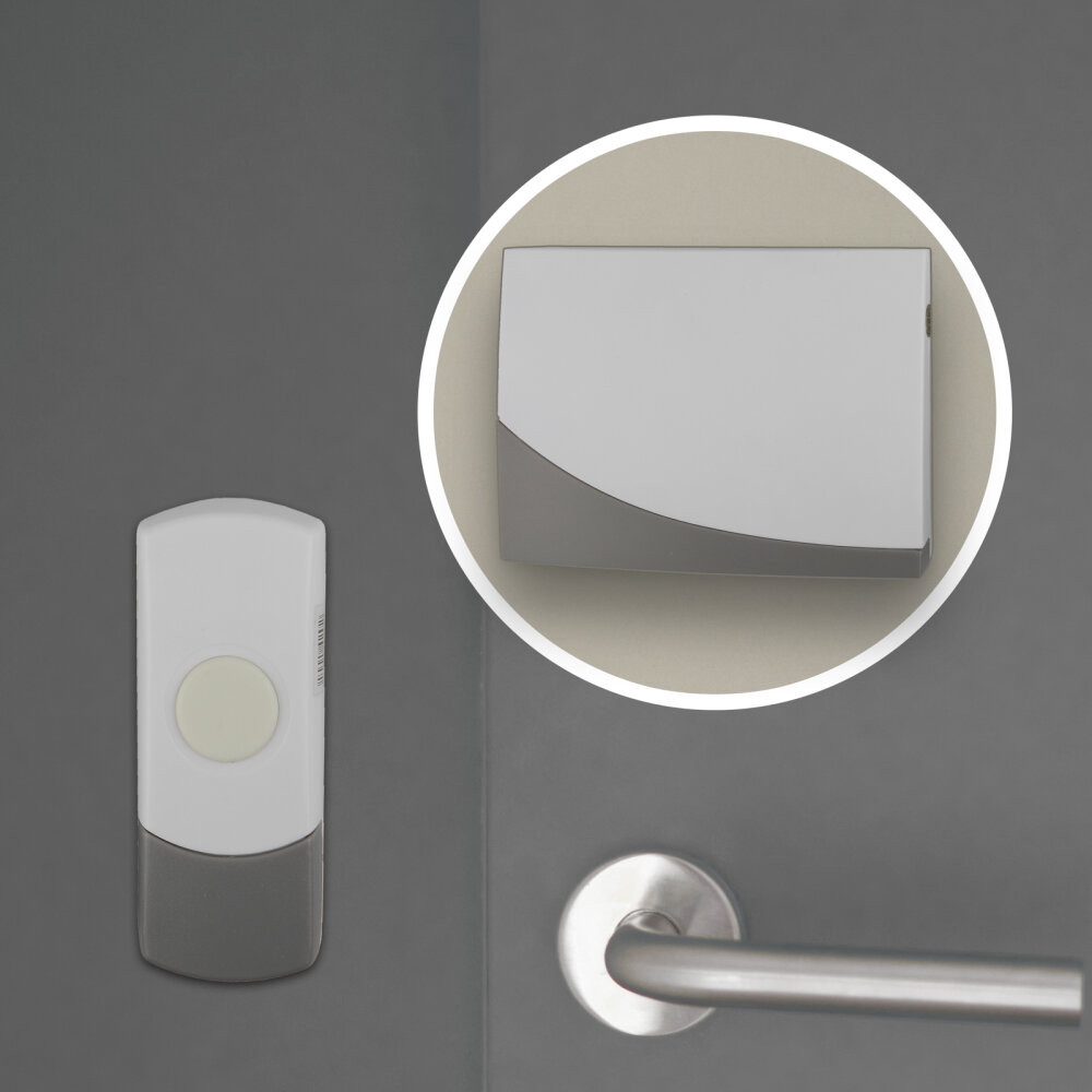 Беспроводной электрический дверной звонок с двумя кнопками, защищёнными от влаги и пыли. Отличное решение для дачи или загородного дома, когда на территорию есть разные входы. Для каждой кнопки своя полифоническая мелодия. Звонок работает от батареек: 1 шт А23 для кнопки (входит в комплект), 2 шт АА пальчиковые для динамика (в комплект не входят). Аккуратный бело-серый дизайн актуален для любого интерьера. Приятная упаковка делает данный звонок хорошим подарком на новоселье и другие праздники.